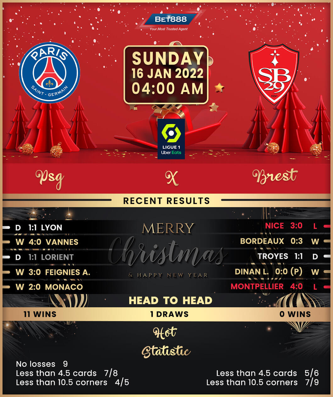 Despite struggling to fulfil their potential under manager Mauricio Pochettino, Paris come into this matchday harbouring a substantial 11-point lead at the summit. However, PSG have drawn four of their last five Ligue 1 matches (W1), three of which saw them hit back to earn a 1-1 stalemate. Against this backdrop, ‘Les Parisiens’ have been nothing short of outstanding at home this season, winning eight of their nine Ligue 1 home games so far (D1) by an aggregate score of 21-6. Bringing the 2020/21 season into the equation, Pochettino’s men have won 11 of their last 12 home league fixtures (D1) after losing the previous three in a row. Adding to their confidence, PSG have only lost one of their 14 Ligue 1 home meetings with Brest (W8, D4), with that solitary defeat dating back to 1981.