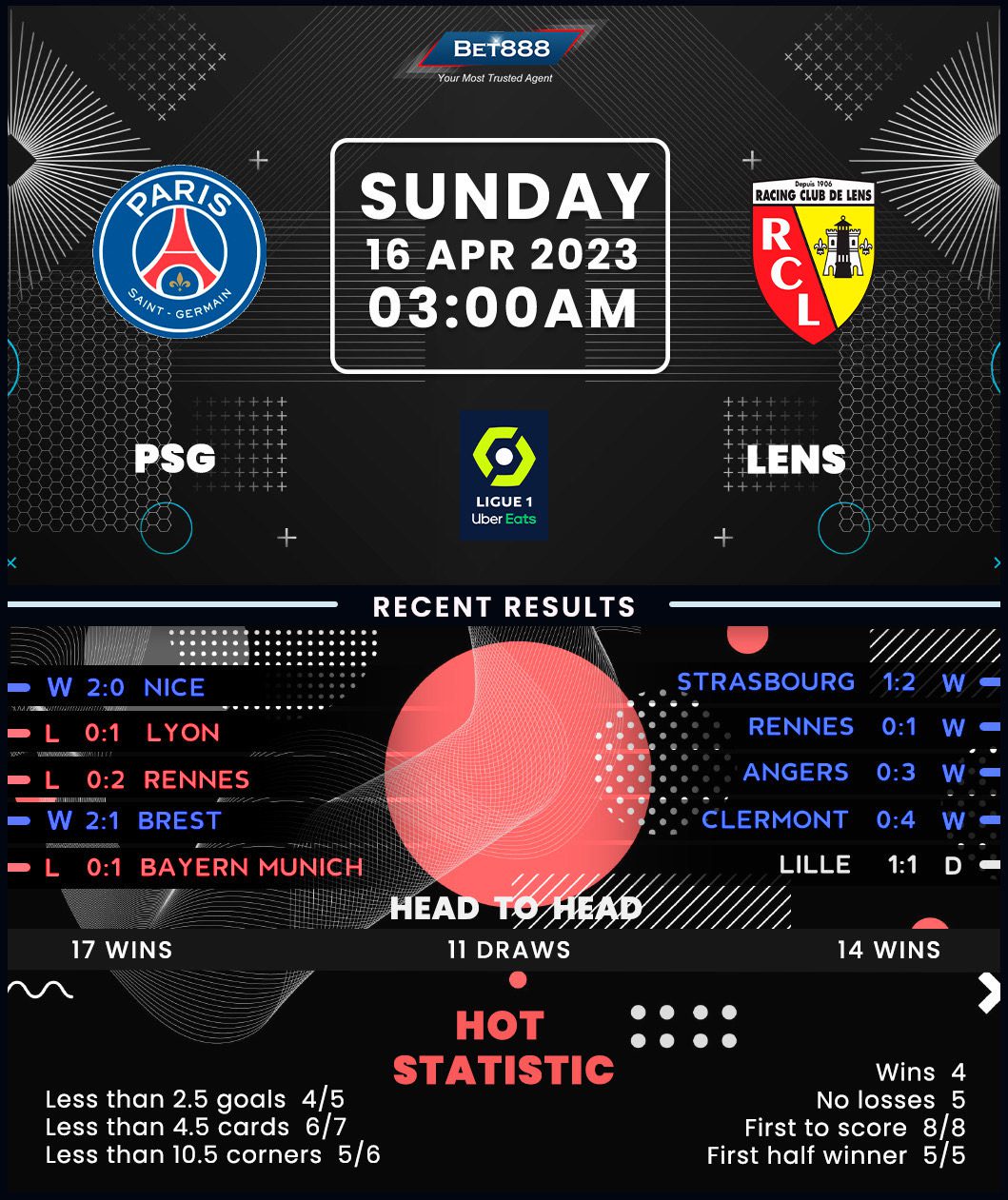 Meanwhile, visiting Lens will be hoping to exploit any nervousness in the home camp, as they aim to secure a victory that would reduce PSG’s lead to only three points, which would bring them closer to their first top-flight title since 1997/98. In contrast to PSG, the visitors are in excellent form, having secured four consecutive league victories in the build-up to this trip. They are on the verge of matching their best consecutive winning streak of the season, dating back to October-November. Lens’ success has been primarily due to their ability to remain solid in the first half of the game and then chase after the break. Only two teams in Ligue 1 have been trailing at half-time in fewer matches this season than Lens. Franck Heise’s men have showcased an impressive defensive resilience, conceding a league-low nine first-half goals this term.