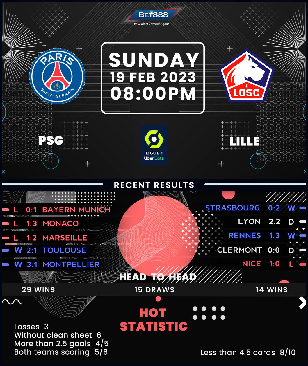 Out-of-sorts PSG followed up a humiliating 3-1 league defeat at Monaco with an equally disappointing 1-0 home loss to Bayern Munich in midweek Champions League action, throwing manager Christophe Galtier’s future into doubt. After losing three consecutive games in all competitions, ‘Les Parisiens’ are staring down the barrel of four defeats in a row during a single campaign for the first time since 2000. But though their last top-flight home loss came to Lille in April 2021, the joint-record Ligue 1 champions have since gone unbeaten in 33 league outings at the Parc des Princes (W28, D5). If that’s not enough to settle the nerves in Paris, PSG ran out 7-1 winners in the reverse fixture earlier this season after breaking the deadlock only ten seconds into the game.