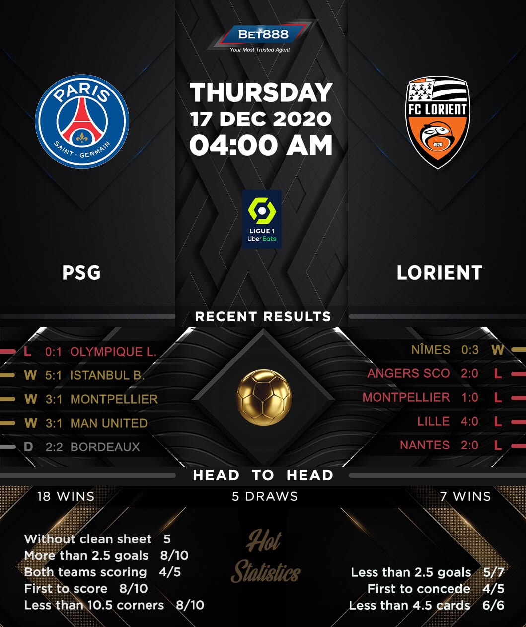 PSG will be looking to return to winning ways in Ligue 1 when they meet newly-promoted Lorient at the Parc des Princes.