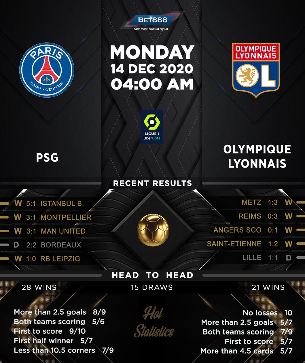 Backed by an impressive 5-1 Champions League win over Istanbul Basaksehir, PSG will be looking to post their third consecutive Ligue 1 victory over Olympique Lyonnais when the two teams meet at the Parc des Princes.