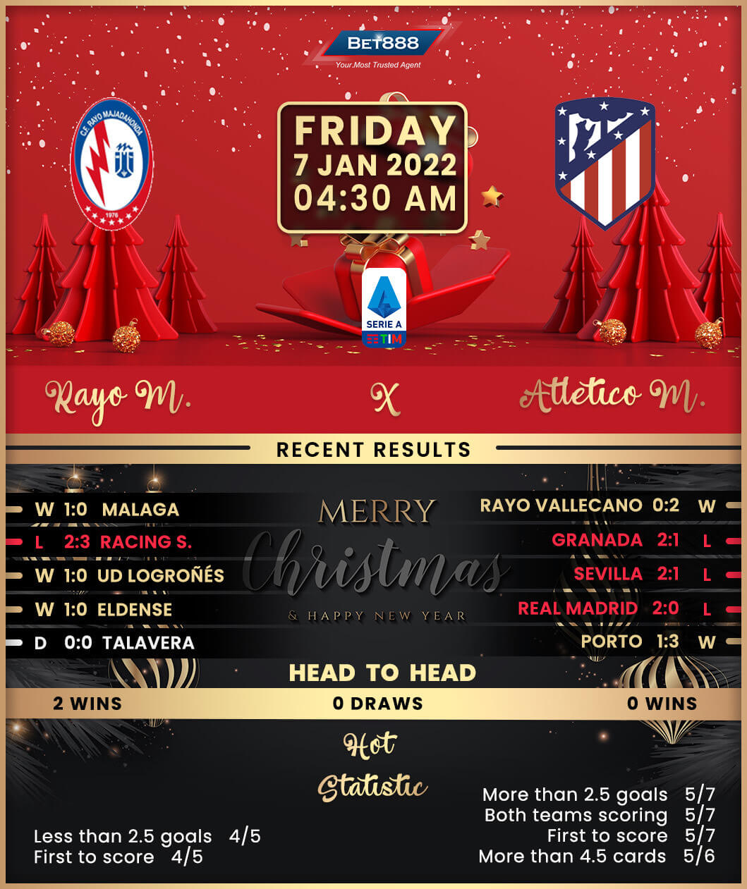 Meanwhile, Atletico Madrid claimed a comfortable 2-0 home win over fellow La Liga top-four contenders Rayo Vallecano to get their 2022 competitive start off to a flying start. However, Diego Simeone’s side experienced a nightmarish end to the last calendar year, losing four league matches in a row, three of which via the same 2-1 scoreline. Therefore, there’s no room for complacency at ‘Los Colchoneros’ despite their status as odds-on favorites in this tie. Indeed, before the abovementioned triumph over Vallecano, Atletico had lost successive competitive games at the Wanda Metropolitano. A shutout against sub-par opposition is one of Simeone’s top priorities here, as his men have failed to keep back-to-back clean sheets in domestic affairs this season.