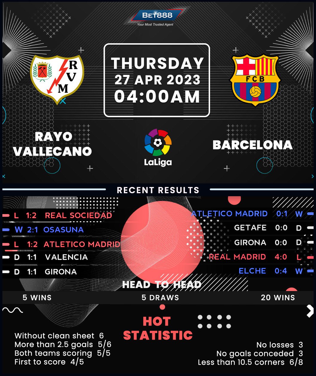 Runaway La Liga leaders Barcelona head to the Campo de Futbol de Vallecas to meet mid-table underachievers Rayo Vallecano.