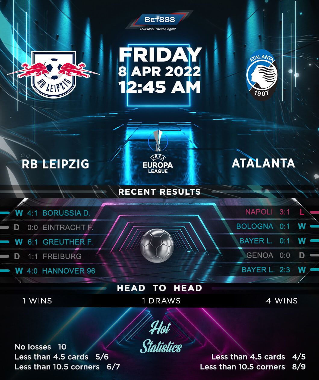 Red Bull Arena is the venue as RB Leipzig and Atalanta go head-to-head in the first leg of their handsomely-looking UEFA Europa League quarter-final tie.