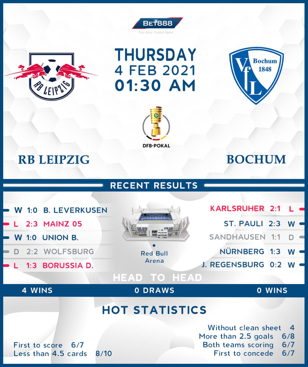 RB Leipzig will be looking to avoid a DFB Pokal upset when they lock horns with Bochum at the Red Bull Arena this midweek.