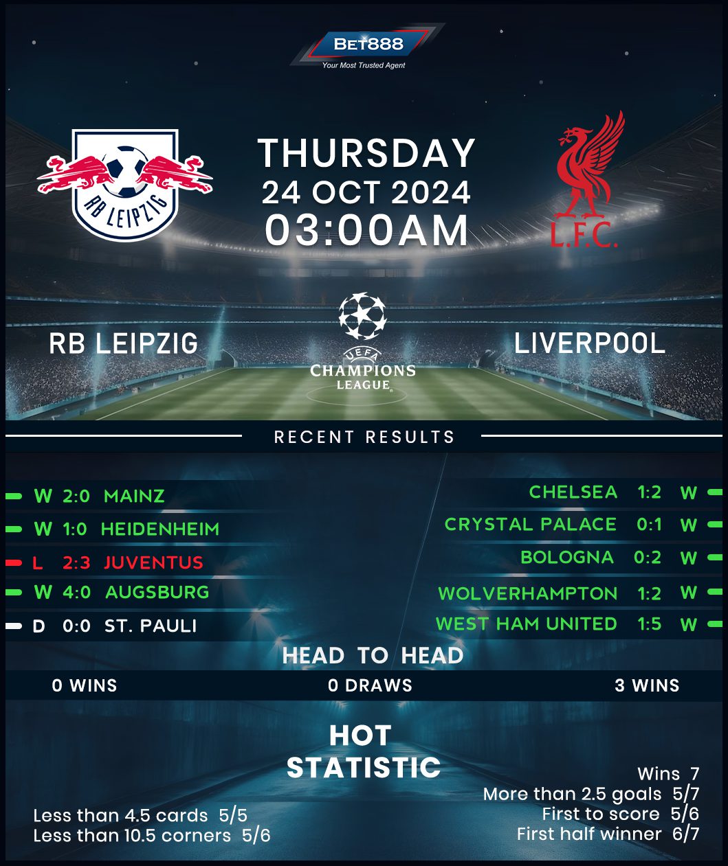 Interestingly, upcoming rivals Liverpool were on the other side in two of those six defeats, registering a brace of 2-0 victories 2020/21 Champions League Round of 16. Though Budapest’s Puskas Arena hosted those two encounters due to Covid restrictions, the Reds won’t mind visiting the Red Bull Arena after racking up seven wins in their last eight Champions League clashes against Bundesliga opposition (D1). Moreover, Liverpool’s all-time record of just six defeats against German clubs suggests Arne Slot’s men are in pole position to maintain their perfect European start (W22, D14, L6). After a 3-1 triumph against AC Milan, Liverpool eased past Bologna 2-0 in round two, while they outgunned Chelsea (2-1) at the weekend to complete their best Premier League start since 1990/91.