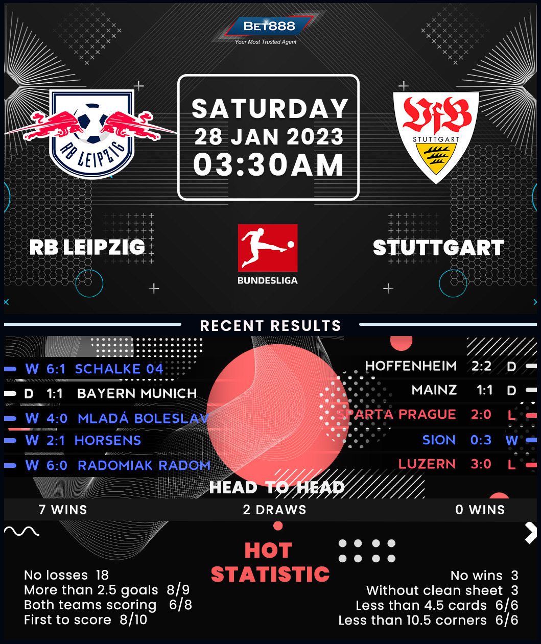 Only a few days after holding record-time champions Bayern Munich to a 1-1 home draw in their 2023 Bundesliga opener, RB Leipzig demolished rock-bottom Schalke 6-1 in midweek league action to close the gap on leaders Munich to just four points. Taking a massive 4-0 halftime lead paved helped Lepzig stretch their outrageous unbeaten run in all competitions to 15 matches (W12, D3), setting them up nicely for what could prove a routine task for Marco Rose’s side. ‘Die Roten Bullen’ have defeated Stuttgart in all but two of their nine previous Bundesliga H2Hs (D2), including six wins in a row before a 1-1 draw in their most recent showdown on the opening matchday.