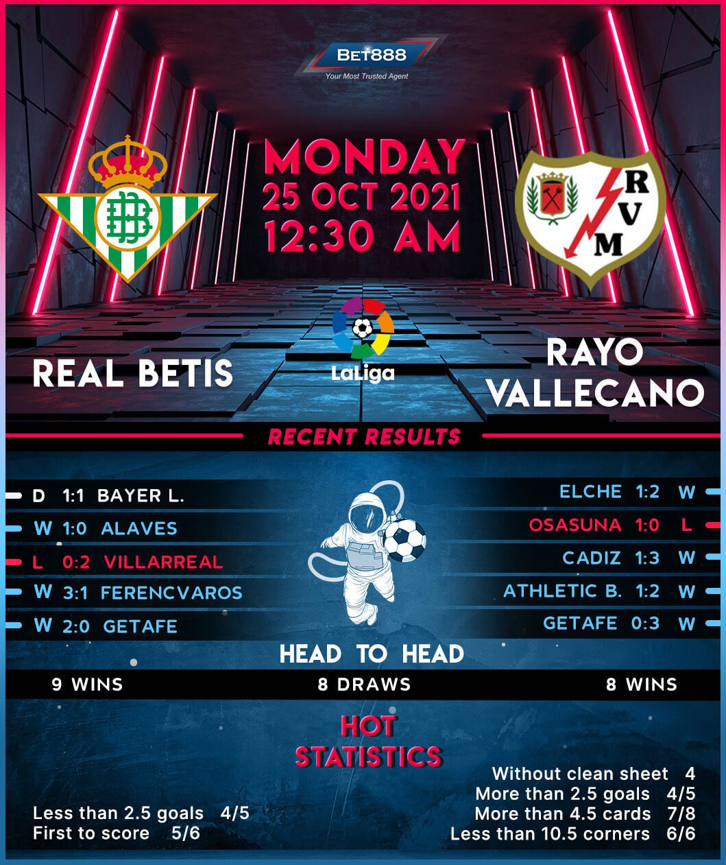 Real Betis and Rayo Vallecano will face each other in a top-half La Liga clash at the Estadio Benito Villamarin.
