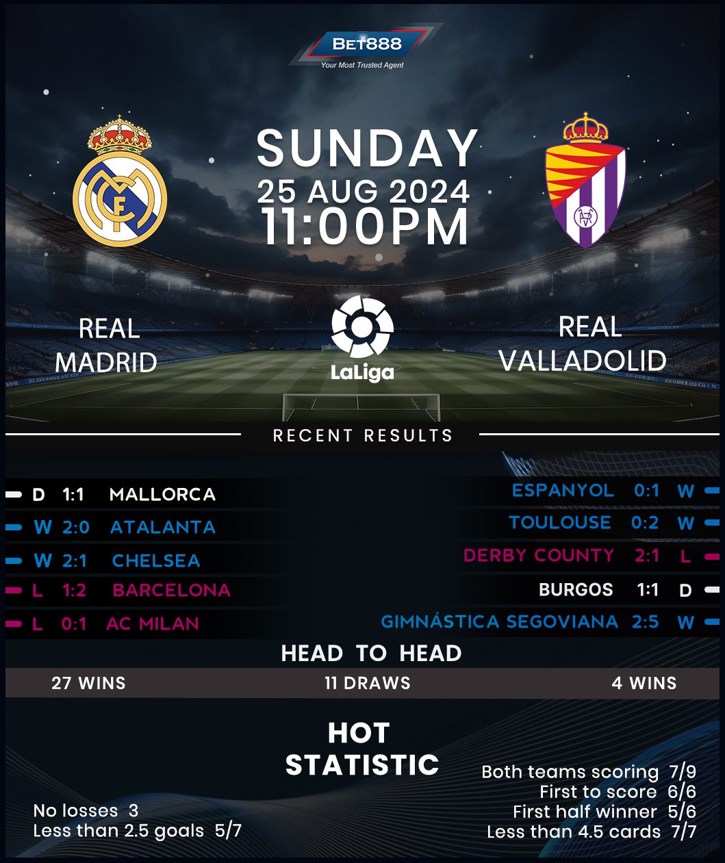 Estadio Santiago Bernabeu sets the stage for Real Madrid’s 2024/25 La Liga home opener against newcomers Real Valladolid.