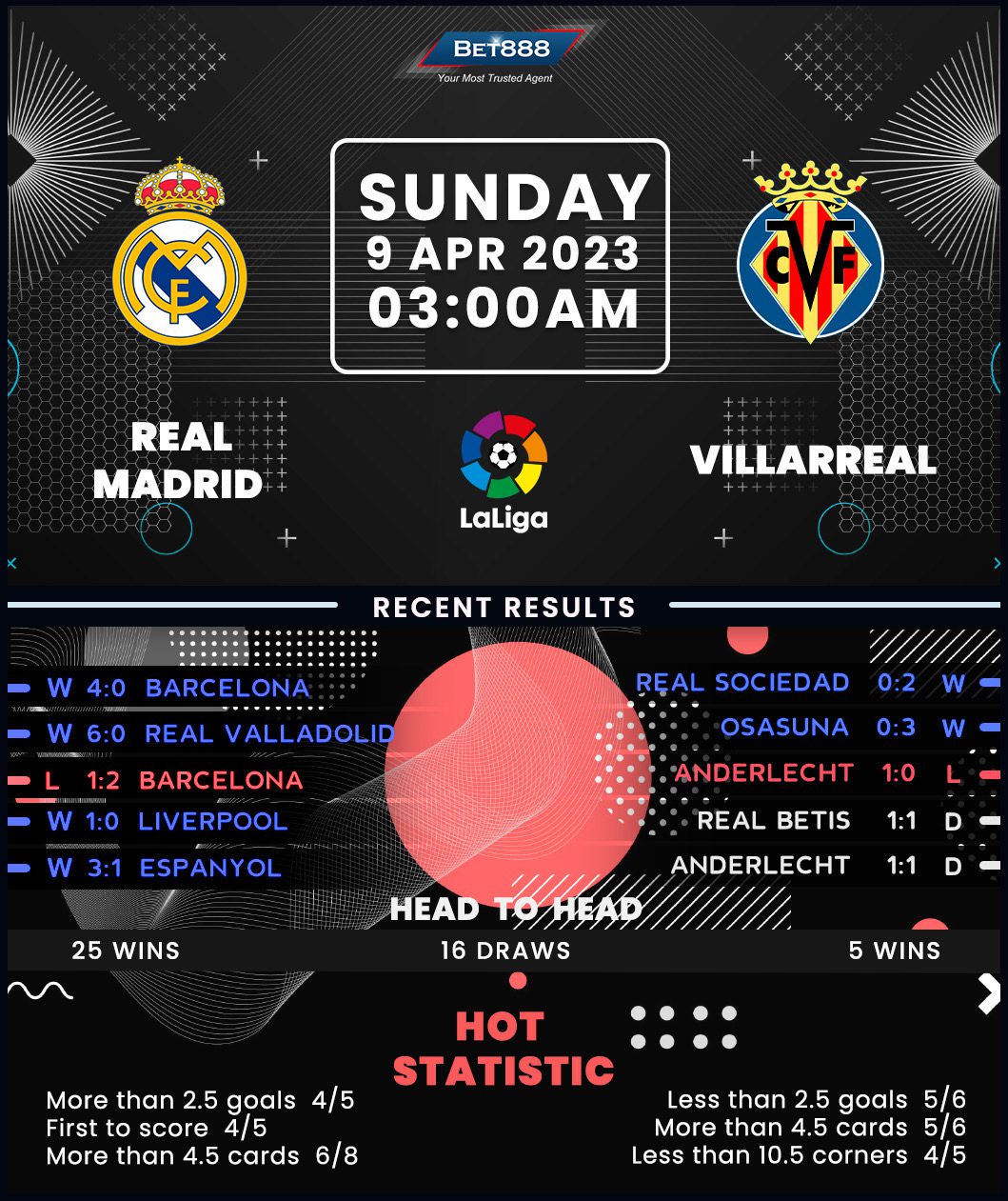 Estadio Santiao Bernabeu is the venue as Real Madrid and Villarreal go head-to-head in a handsomely-looking La Liga affair.