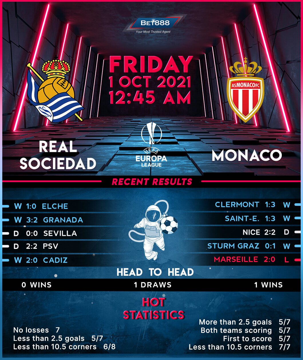 Real Sociedad and Monaco go head-to-head at the Reale Arena in an exciting UEFA Europa League Group B encounter. This will be their first meeting in European competition.