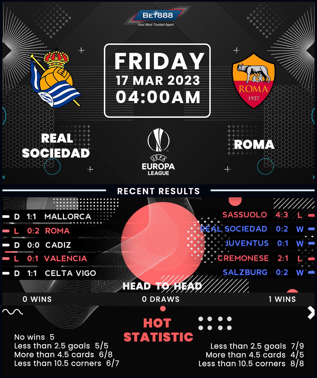 Real Sociedad have a mountain to climb if they’re to qualify for the Europa League quarter-finals after losing the first leg 2-0 at Roma as the two sides go head-to-head in the return fixture at the Reale Arena.