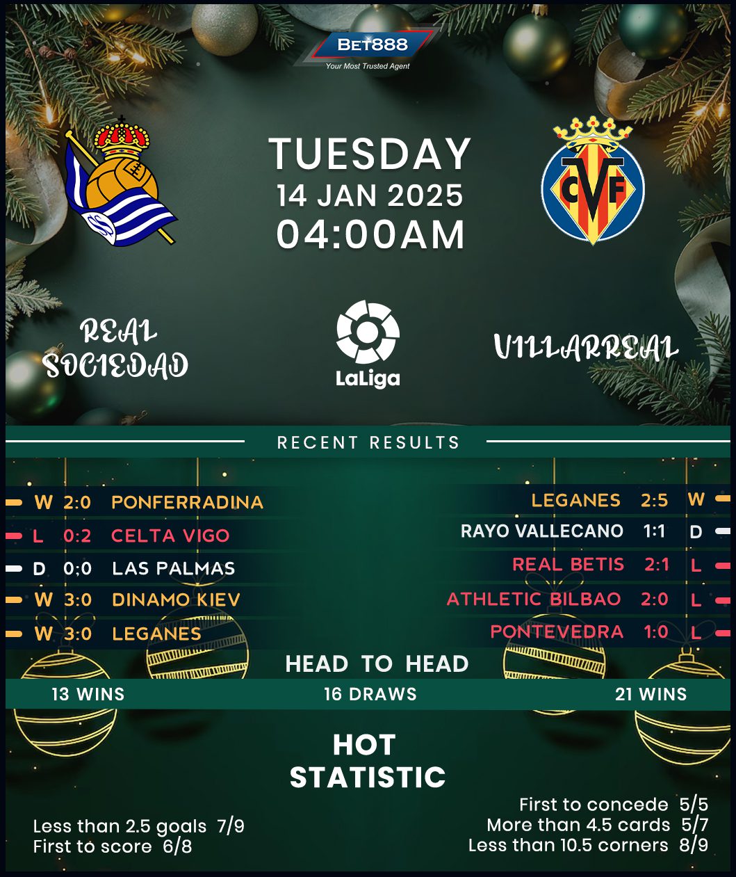 Fifth-placed Villarreal rounded out an underwhelming December with a morale-boosting 5-2 triumph at Leganes, halting a dismal five-game winless league streak (D2, L3). However, the visitors haven’t won consecutive La Liga matches since the start of November, which is part of the reason they languish six points adrift of fourth-placed Athletic Bilbao. With a game in hand, they’re still firmly in the race for a coveted Champions League finish. But, they must find consistency on the road after blowing hot and cold across their last three La Liga travels (W1, D1, L1). Each game in that stretch saw them concede precisely two goals, highlighting Marcelino’s porous backline as the team’s weakest link. Against this backdrop, ‘El Submarino Amarillo’ haven’t capitulated more than once on their last six top-flight visits to San Sebastian (W4, D1, L1).