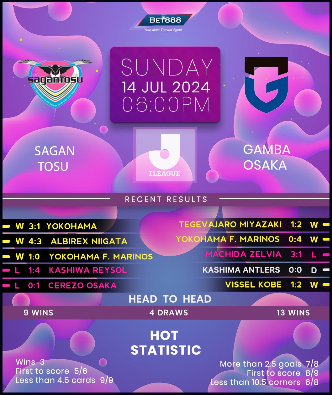 Ekimae Real Estate Stadium sets the stage for a lopsided J1 League encounter between relegation-battling Sagan Tosu and title hopefuls Gamba Osaka.