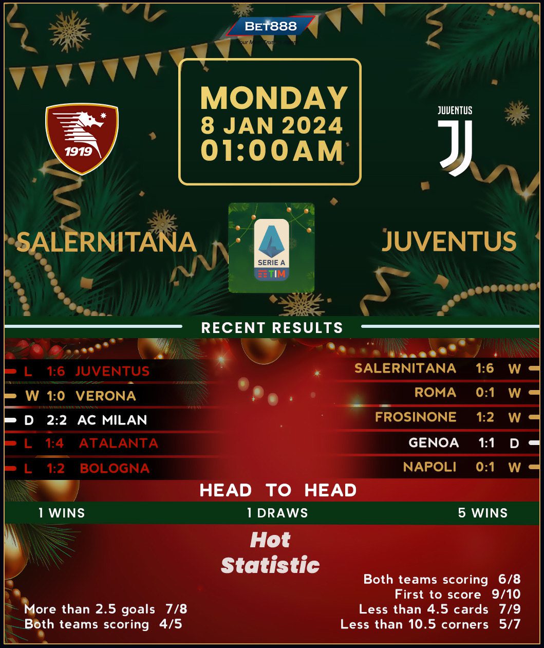 Only days after suffering a humiliating 6-1 defeat at Juventus despite taking an early lead in midweek Coppa Italia action, Salernitana will be out to claim revenge and extend a two-game unbeaten league run (W1, D1). Filippo Inzaghi’s side finished 2023 with a 1-0 win at Hellas Verona in a relegation six-pointer after holding top-four hopefuls AC Milan to a 2-2 draw in their last home outing. Nailed to the bottom of the standings, three points adrift of safety, Salernitana won’t pull themselves out of the relegation zone without winning here. However, with only Empoli picking up fewer than Salernitana’s seven points at home this season (W1, D4, L4), ‘I Granata’ would probably settle for a draw.