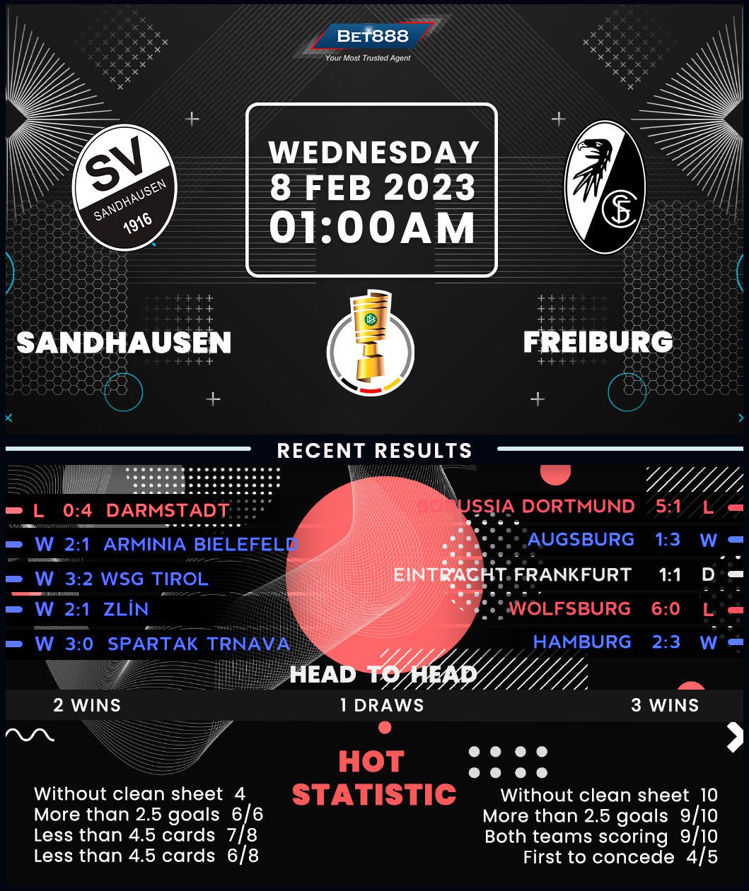 Hardtwaldstadion is the venue as Sandhausen and Freiburg go head-to-head in an exciting DFB-Pokal round-of-16 tie.