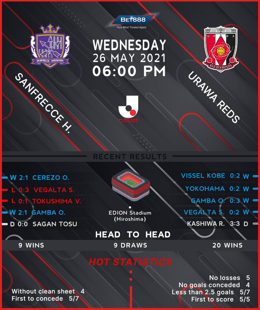 Sanfrecce Hiroshima and Urawa Reds are set to face-off at the Edion Stadium Hiroshima in an upper-half-of-the-table J1 League clash.