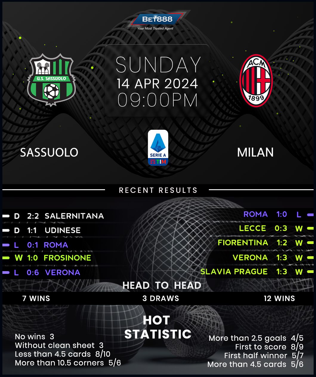 Mapei Stadium forms the backdrop for a lopsided Serie A encounter between relegation-threatened Sassuolo and runners-up AC Milan.
