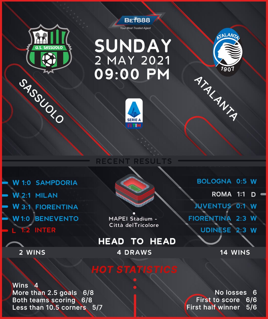 High-flying Sassuolo will be looking to put the brakes on a disastrous seven-game losing Serie A streak to Atalanta when the two sides meet at the Mapei Stadium – Città del Tricolore this weekend.