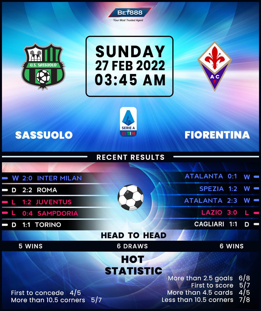 Mapei Stadium is the venue as Sassuolo and Fiorentina go head-to-head in a handsomely-looking Serie A match-up.