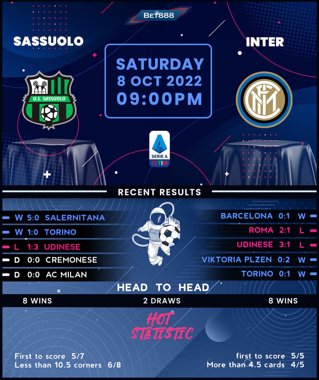Scoring 2+ goals on either side of halftime helped Sassuolo thrash Salernitana 5-0 in a historic fixture, which saw the first-ever instance of a woman refereeing a Serie A contest last time out. Following a topsy-turvy six-game league start (W1, D3, L2), Alessio Dionisi’s men have won back-to-back top-flight matches ‘to nil’ and could make it three-straight Serie A victories without conceding for the first time in the club’s history. Despite being one of the most vulnerable defensive sides in Serie A for years, ‘I Neroverdi’ have kept five clean sheets in Italy’s top flight this term, with only Barcelona (6) recording more shutouts in the top five European leagues. Sassuolo ought to feel confident after beating Inter 2-0 in their most recent Serie A encounter in February.
