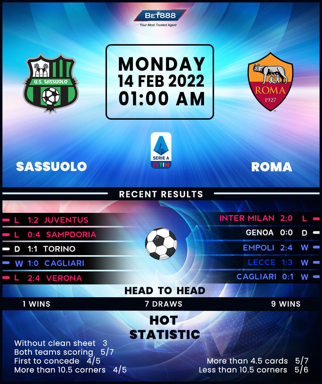 Mid-table Sassuolo will be looking to rediscover their mojo when they meet seventh-placed Roma at the Mapei Stadium.