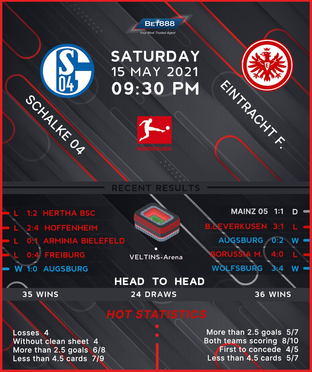 Champions League football is at stake as Eintracht Frankfurt head to the Veltins Arena to meet relegated Schalke 04 in the penultimate round of the 2020/21 Bundesliga fixtures.