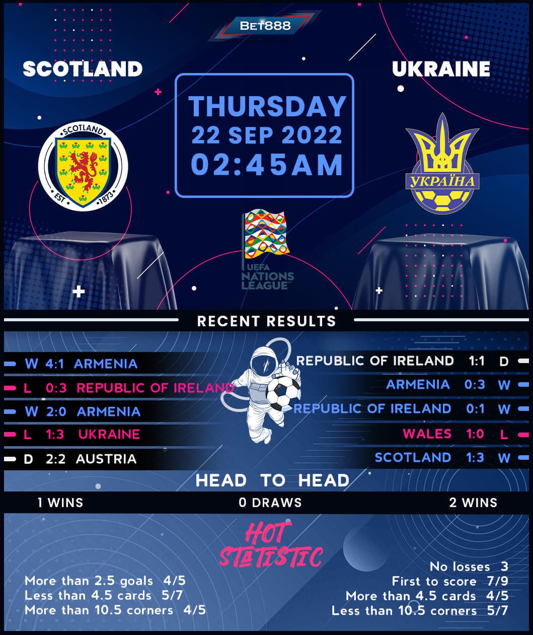 On the other hand, Ukraine’s bid to reach the World Cup finals for the first time since 2006 fell apart in the playoffs final as Wales overcame them 1-0 to send a morale-crippled nation into further disarray. But the resumption of the Ukrainian Premier League in the face of war has brought smiles back to the visiting team’s faces as they aim to maintain their unbeaten Group B1 start (W2, D1). One of Ukraine’s victories in this season’s Nations League came on the United Kingdom’s soil, with Oleksandr Petrakov’s side defeating Ireland 1-0 on matchday one. That success forms part of Ukraine’s decent overall record in the Nations League (W7, D1, L4). It’s worth noting that Roman Yaremchuk & Co only failed to score once in those 12 matches, suggesting Hampden Park could be in for another upset.