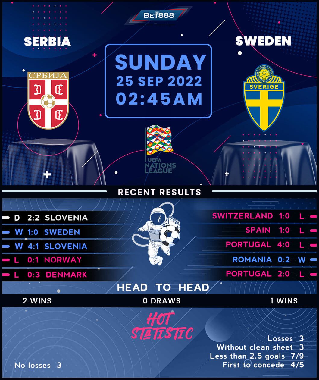 Serbia and Sweden are set to face each other at the Stadion Rajko Mitic in the penultimate round of the 2022/23 Nations League.