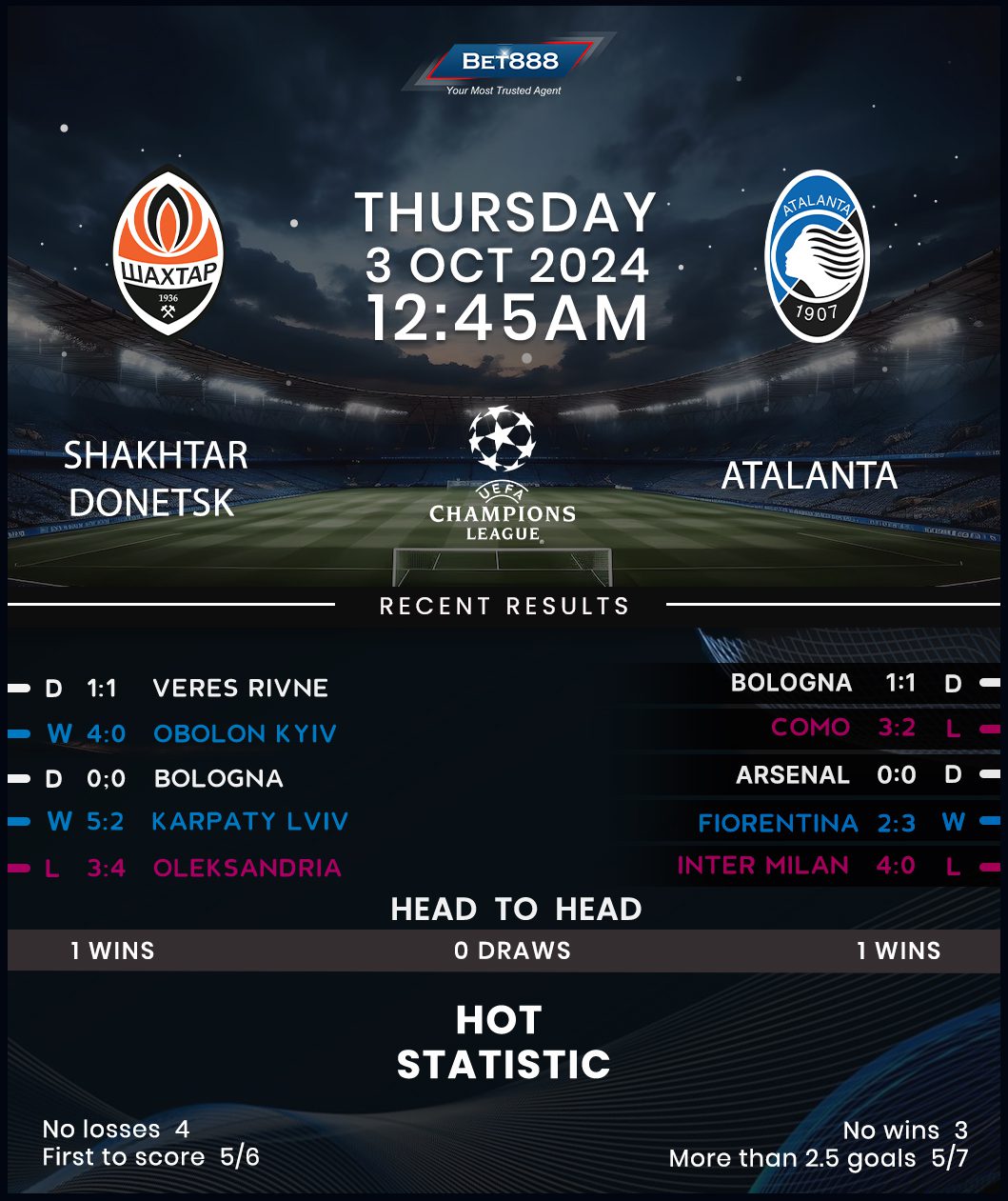 Like their rivals, Atalanta kicked off their Champions League campaign with a goalless draw, with Mateo Retegui squandering a penalty against Arsenal on matchday one. Since seeing off Lecce 4-0 in their opening Serie A away game, Gian Piero Gasperini’s men have gone winless on their last three competitive road trips (D1, L2). That doesn’t bode well as the Europa League winners bid to halt a four-game winless run in Champions League away action (D2, L2). However, they have fond memories of their only previous away game against Shakhtar, having swept the Ukrainians aside with a 3-0 victory in the 2019/20 Champions League group stages. That result was part of Atalanta’s run of five wins from their first seven away matches at Europe’s top table.