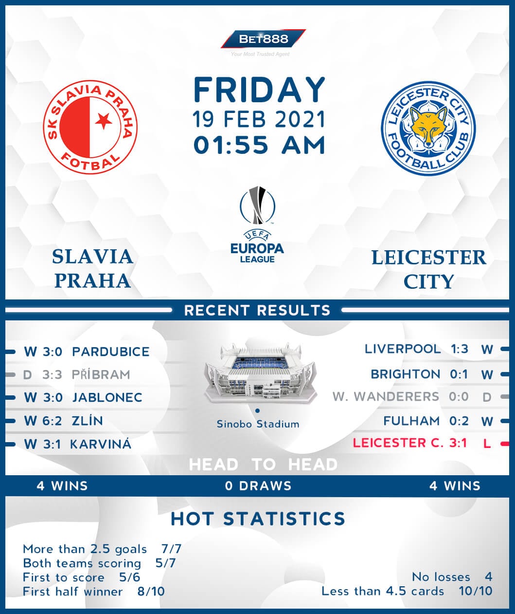 Sinobo Stadium is the venue, as Slavia Praha and Leicester City lock horns in the first leg of their UEFA Europa League last-32 tie.
