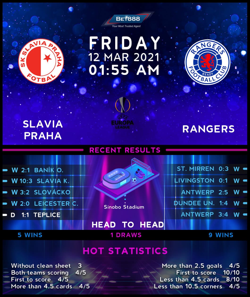 Slavia Praha and Rangers go head-to-head at the Sinobo Stadium in the first leg of their UEFA Europa League last-16 tie.