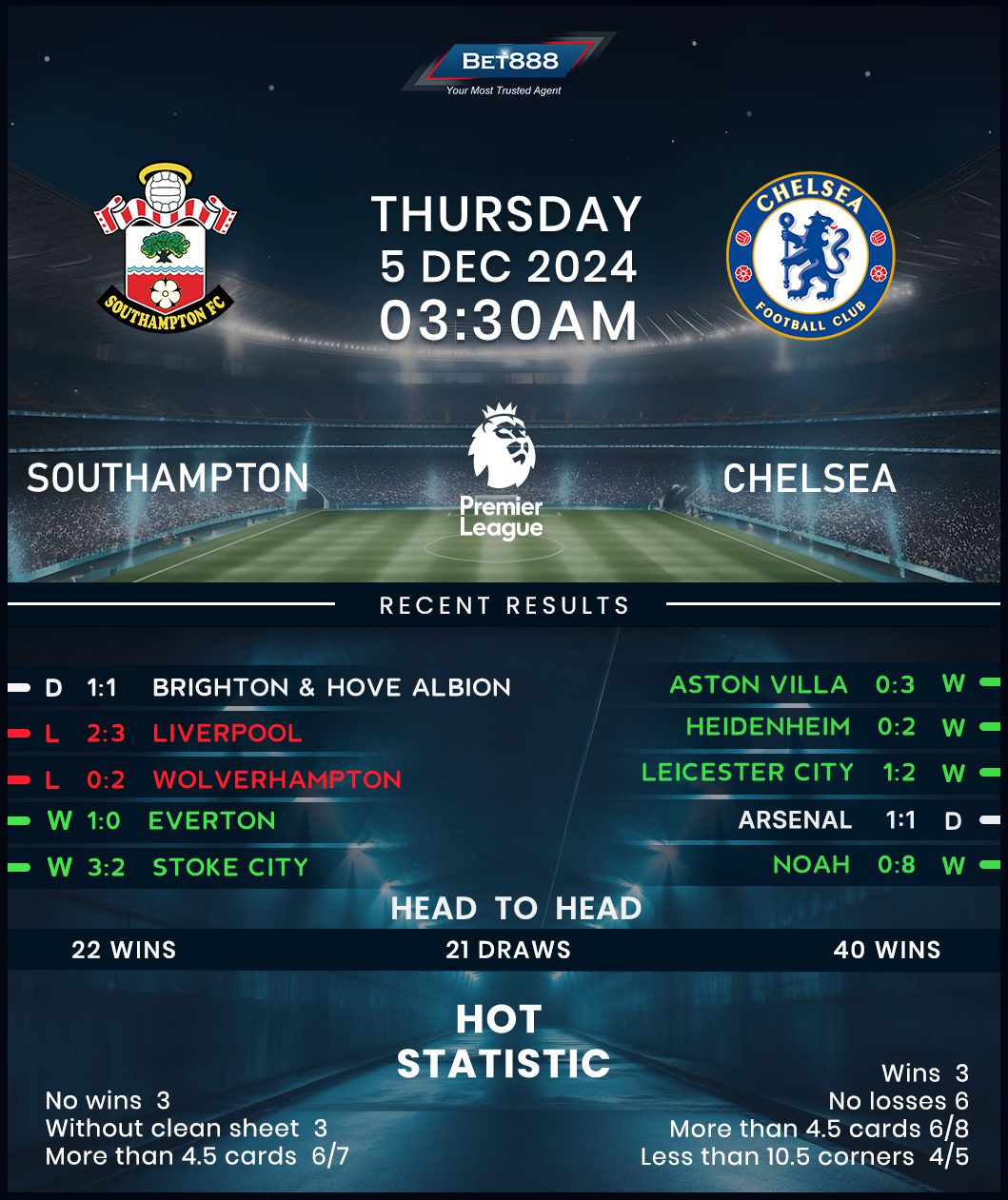 St Mary’s Stadium is the venue as Premier League basement boys Southampton take on top-four hopefuls Chelsea in conflicting spirits.