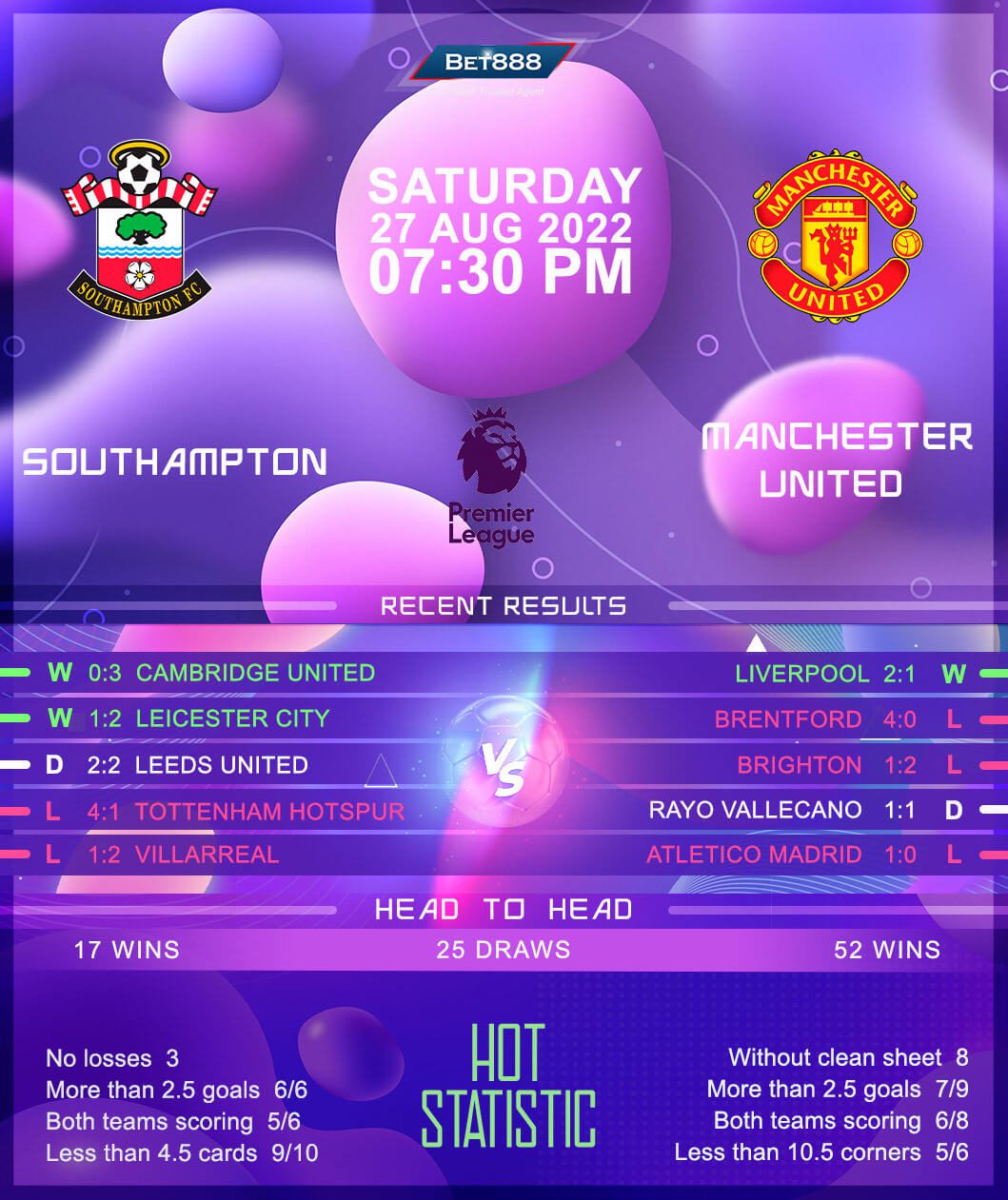 After a two-game winless start to the new top-flight season (D1, L1), Southampton came from behind to beat Leicester City 2-1 on the road last time out. Ralph Hasenhuttl’s men are now on the lookout for back-to-back Premier League wins for the first time since February, though there are several roadblocks. For starters, the ‘Saints’ have suffered five defeats in their last seven home league outings (W1, D1), conceding 2+ goals six times in the process. On top of that, Southampton’s disastrous Premier League record of 11 consecutive winless matches against Man United at home (D5, L6) further dampens the enthusiasm in the home camp. Home and away, they have only won one of their last 15 top-flight H2Hs (D5, L8), casting further doubt on their bid to upset their visitors.
