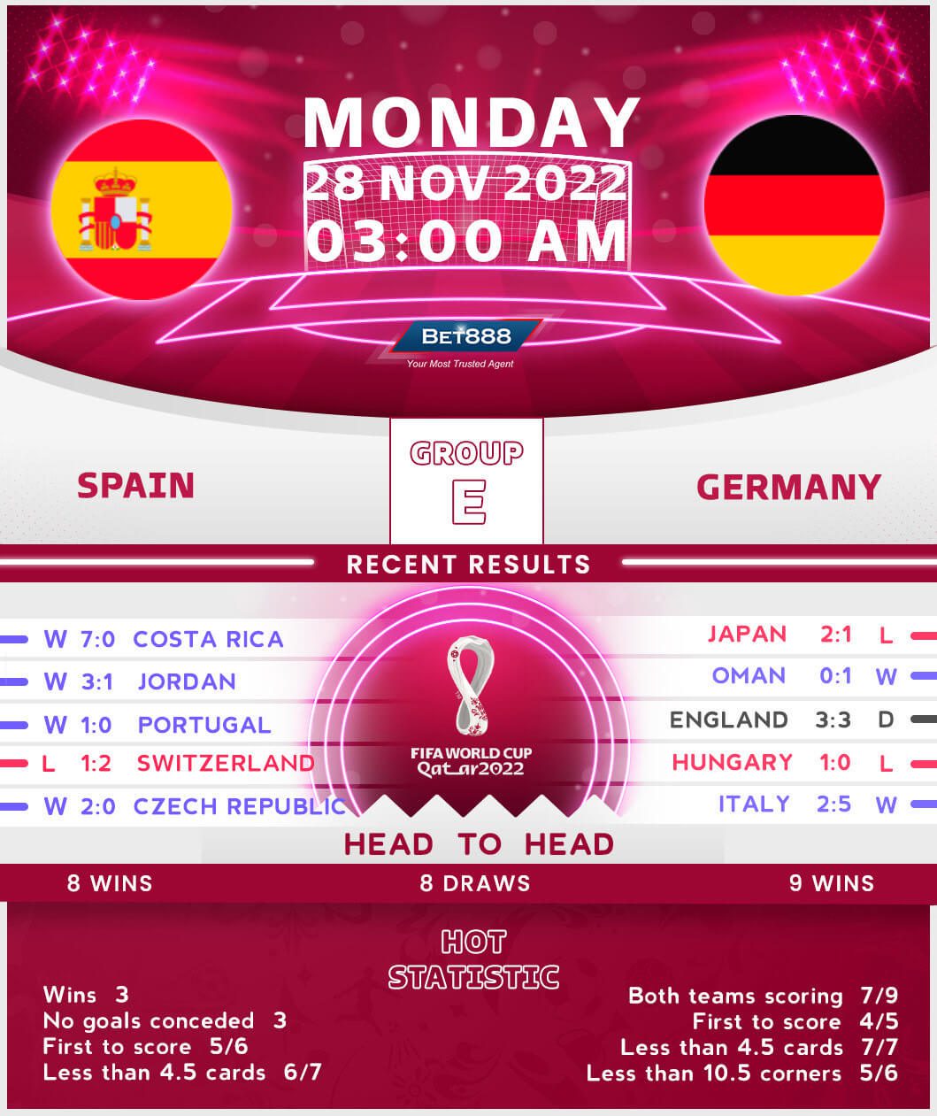 Spain’s road to redemption for a disappointing last-16 exit in Russia four years ago started at Euro 2020 last summer as they reached the competition’s semi-finals. Yet the nation’s ambitions are lofty following a memorable triumph in 2010 as manager Luis Enrique aims to build on his team’s triumphant 2022/23 UEFA Nations League group-stage campaign at the expense of Portugal and Switzerland. Spain’s 12th consecutive appearance at the World Cup finals accounts for the fourth-best record in the tournament’s history, underpinning their high aspirations in Qatar. On top of that, ‘La FuriaRoja‘ have finished top of their respective World Cup group four times in five tournaments in the 21st century! Scoring against Costa Rica would see the Spaniards reach a flattering milestone as it would be their 100th goal at the World Cup finals.
