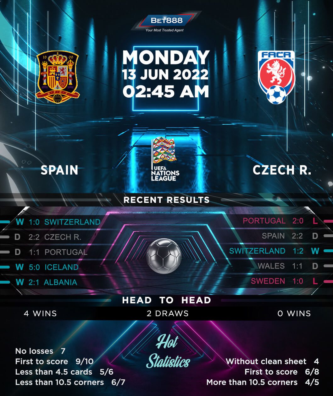 After back-to-back draws with Portugal and the Czech Republic, Luis Enrique’s side got their stuttering Nations League campaign off the mark last time out. Pablo Sarabia’s early strike fired Spain to a hard-fought 1-0 triumph away to Switzerland, extending his nation’s unbeaten run to seven games (W5, D2). Moreover, before being held to a 1-1 draw to Portugal in their most recent home outing, ‘La Furia Roja’ had won all four previous home fixtures in the post-Euro 2020 campaign. Spain could move ahead of the competition in this group if they can extend an impressive 100% unbeaten H2H record against the Czechs (W4, D2). The hosts should feel comfortable about their scoring prospects, having found the net in 17 consecutive internationals since a goalless draw with Sweden at Euro 2020.