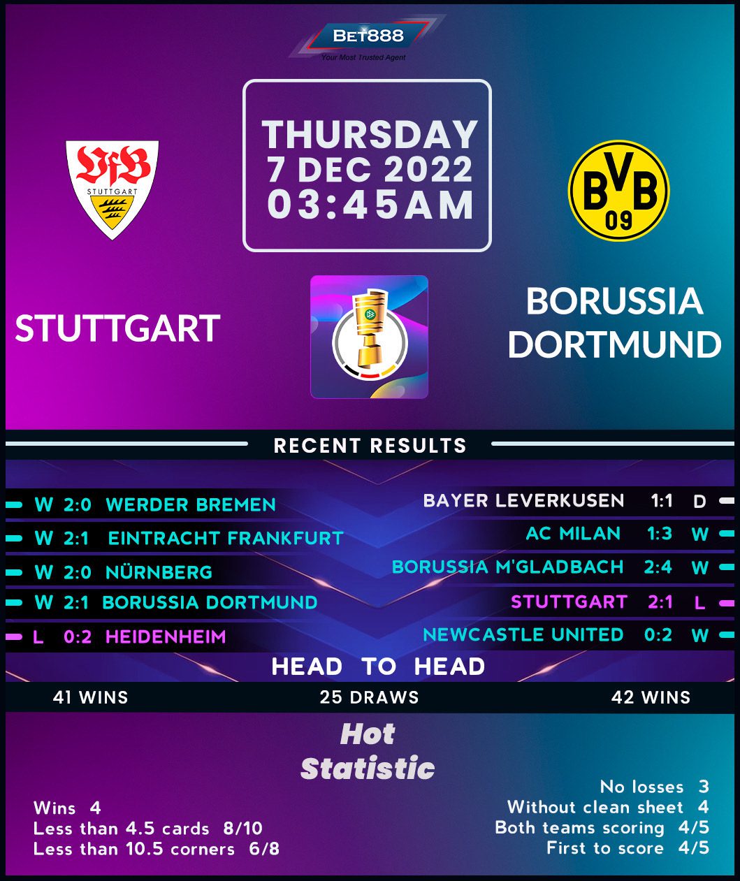 MHPArena is the venue as Stuttgart and Borussia Dortmund go head-to-head in an exciting DFB-Pokal tie.