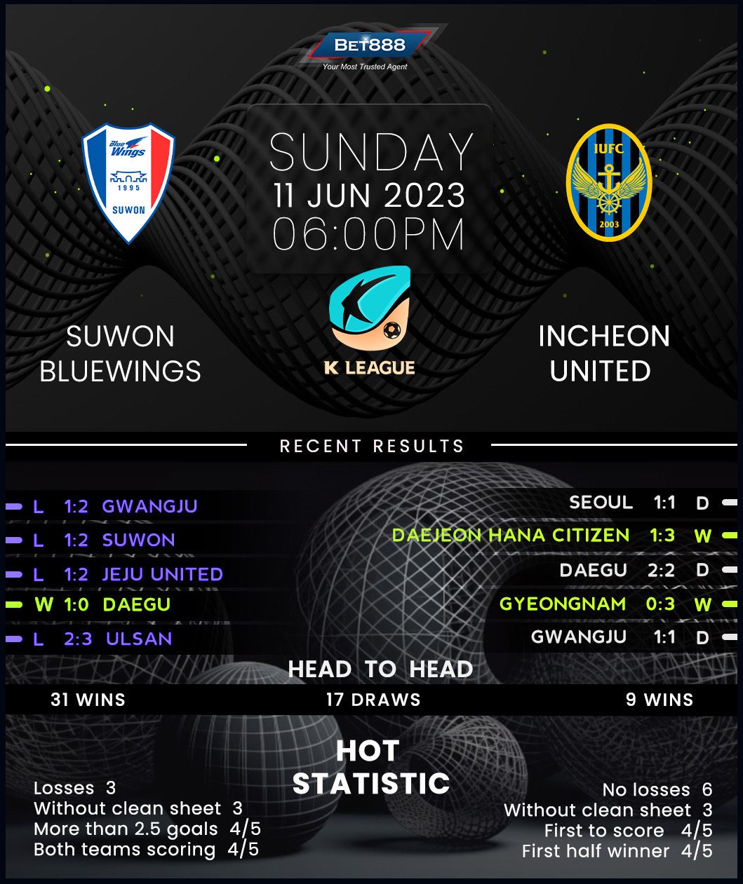 Suwon World Cup Stadium is the venue as K League 1 basement boys Suwon Bluewings encounter fellow bottom-half rivals Incheon United.