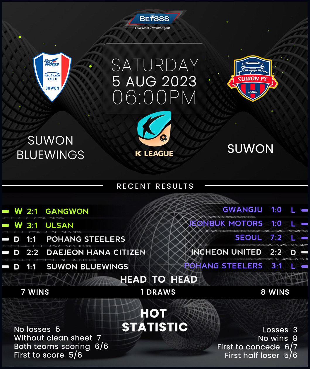 After only amassing two wins in the opening 22 league matches (D6, L14), resurgent Suwon Bluewings have turned the corner, racking up back-to-back victories for the first time this season to escape from the bottom. A quick-fire start has proved a winning recipe for the ‘Tricolor,’ as they scored a first-half opener in both wins. However, Kim Byung-soo’s men tend to roll over after a sluggish start, losing all seven home league games in which they’ve conceded the opening goal this season. Keen to avenge a brace of 2-1 H2H defeats, they will rely on a better start. But Bluewings fans may want to contain their optimism as the hosts have only netted four first-half goals in 12 top-flight home fixtures this term.