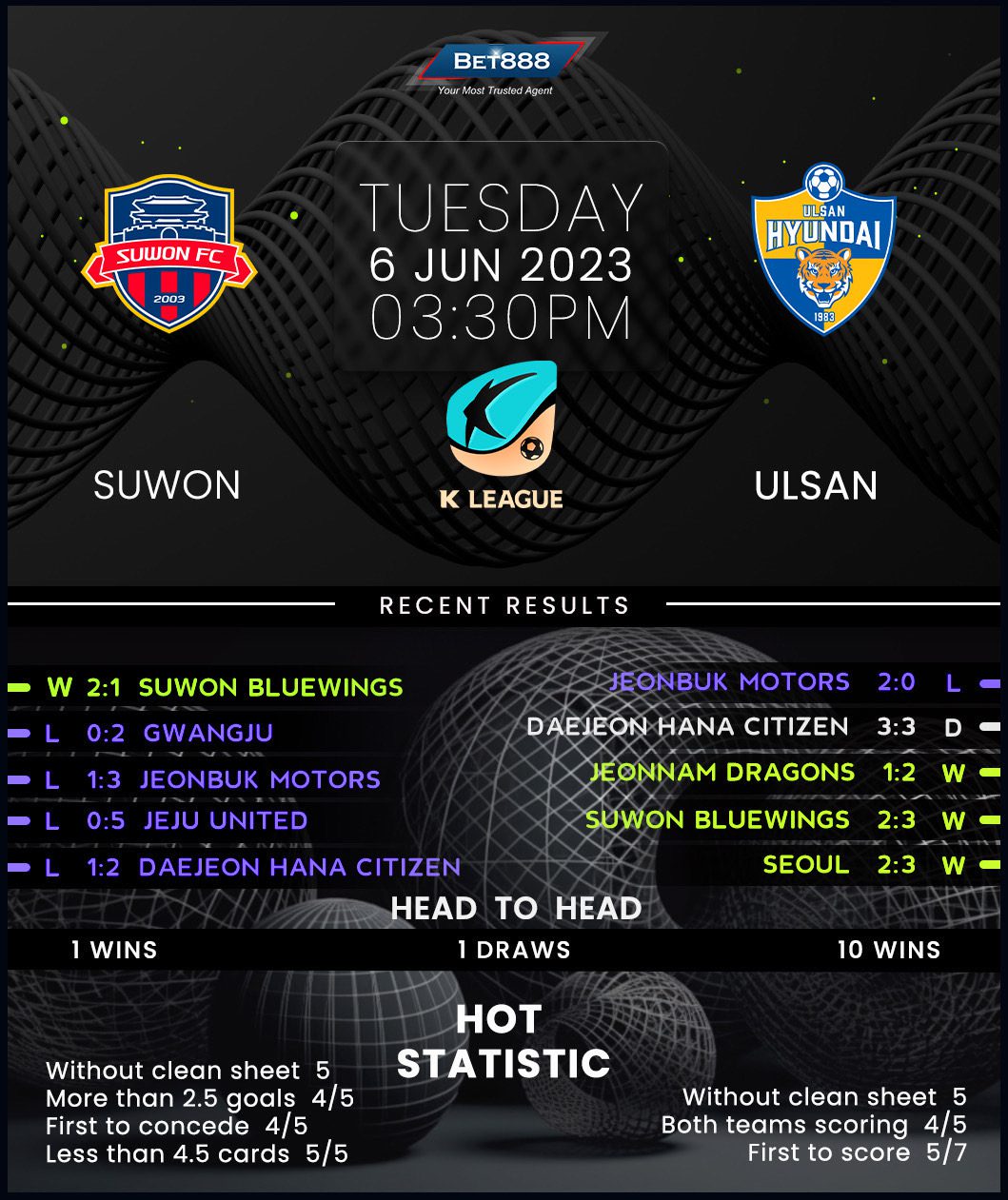 K League 1 pacesetters Ulsan Hyundai travel to the Suwon Sports Complex to meet Suwon in an exciting showdown.