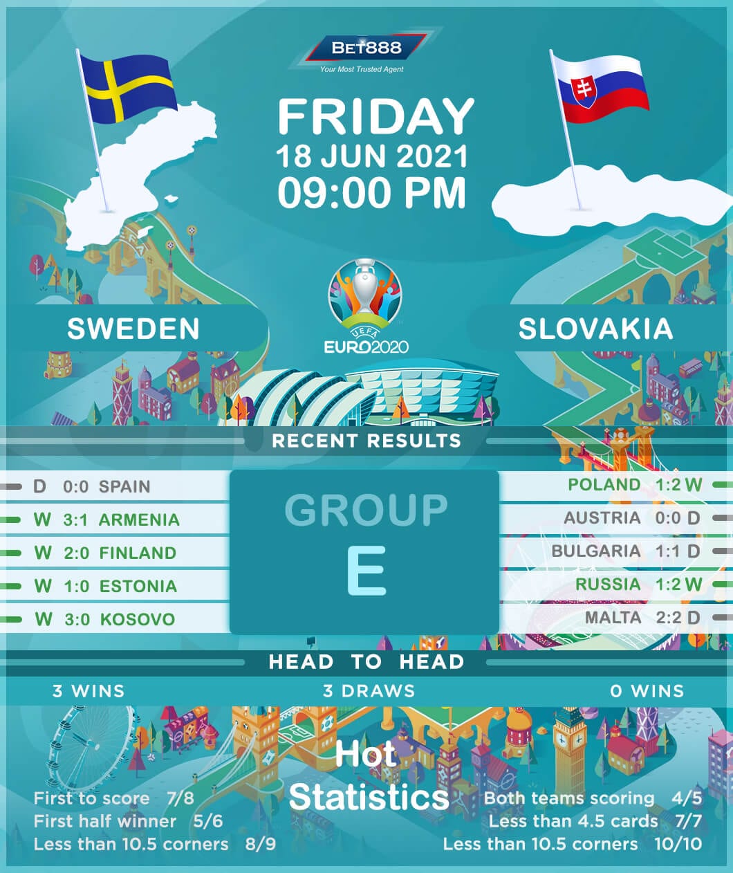 Saint-Petersburg Stadium is the venue as Sweden and Slovakia go head-to-head in the second group stage round at Euro 2020.