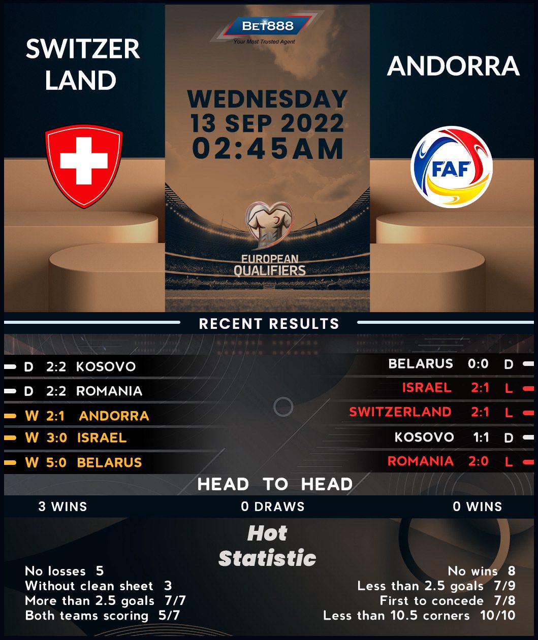 Switzerland dropped two separated leads in a gut-wrenching 2-2 draw against Kosovo last weekend, their second identical stalemate in Euro qualifiers following an action-packed home clash against Romania in June. After back-to-back draws, returning to winning ways is a must for Murat Yakin’s side, with their lead at the top of qualifying Group I dwindling following a three-game winning start. With third-placed Israel only three points adrift, the Swiss’ qualification for a third consecutive Euro tournament isn’t a foregone conclusion, but a victory over continental minnows Andorra should be. Despite winning all three competitive H2Hs in the 21st century, it’s worth noting two of those wins have come via the same 2-1 scoreline, indicating the ‘Nati’ may need to work their socks off to claim all three points.