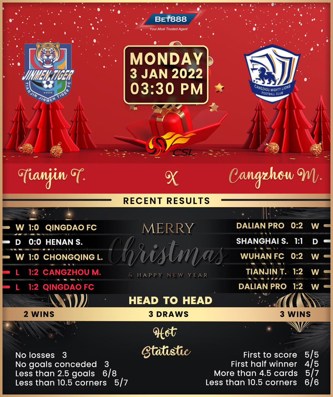 Tianjin Jinmen Tiger and Cangzhou Mighty Lions are set to trade tackles in a high-stake Chinese Super League encounter at the Kunshan Stadium.