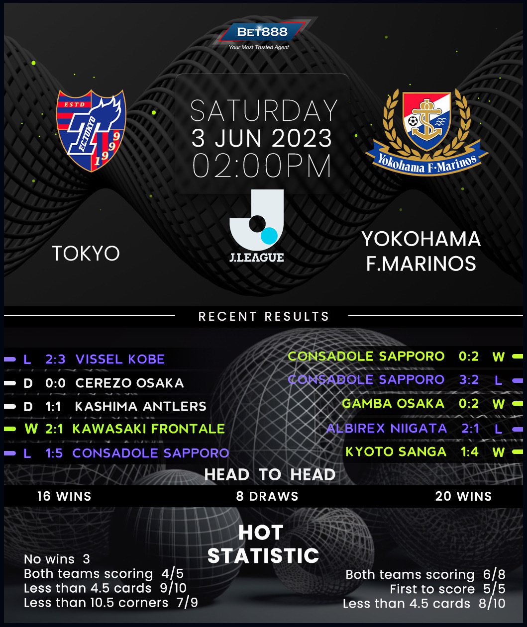 Ajinomoto Stadium is the venue as mid-table Tokyo and reigning J1 League holders Yokohama F. Marinos lock horns in a handsomely-looking showdown.