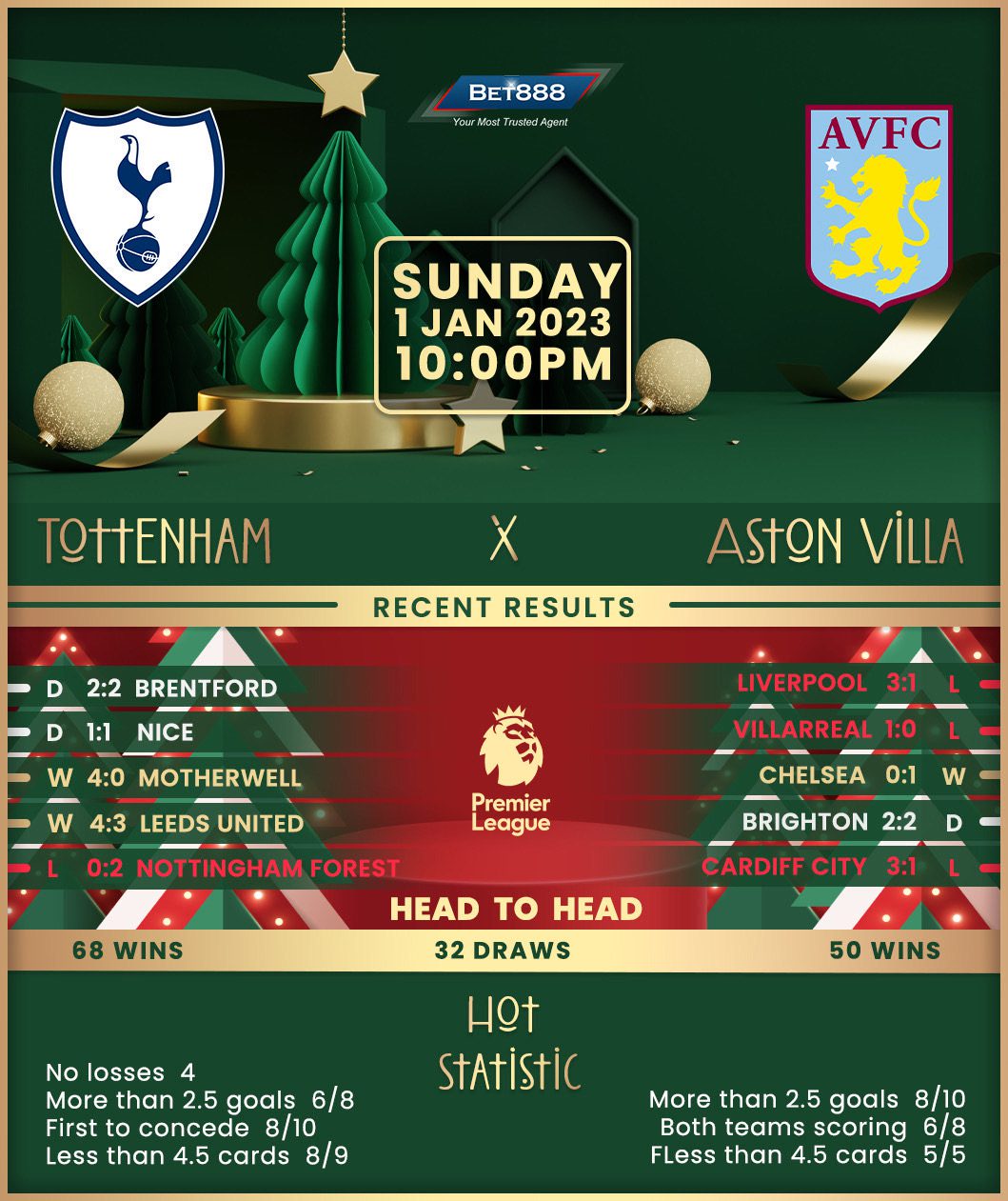 On the other hand, Aston Villa slipped to a 3-1 home defeat to Liverpool on Boxing Day, ending Unai Emery’s 100% Premier League record at the helm (W2). But the Spaniard won his touchline debut on hostile turf in November, guiding the ‘Lions’ to a 2-1 triumph at Brighton & Hove Albion, which accounts for their solitary Premier League success on the road in 2022/23 (D2, L5). If they’re to make it two in a row, the visitors will have to defy their lackluster form in the capital, having lost their last five Premier League away matches against London sides, conceding 2+ goals on each occasion. That’s where Emery comes in, with the ex-Arsenal boss going unbeaten in all three managerial of his Premier League encounters against Tottenham (W1, D2).