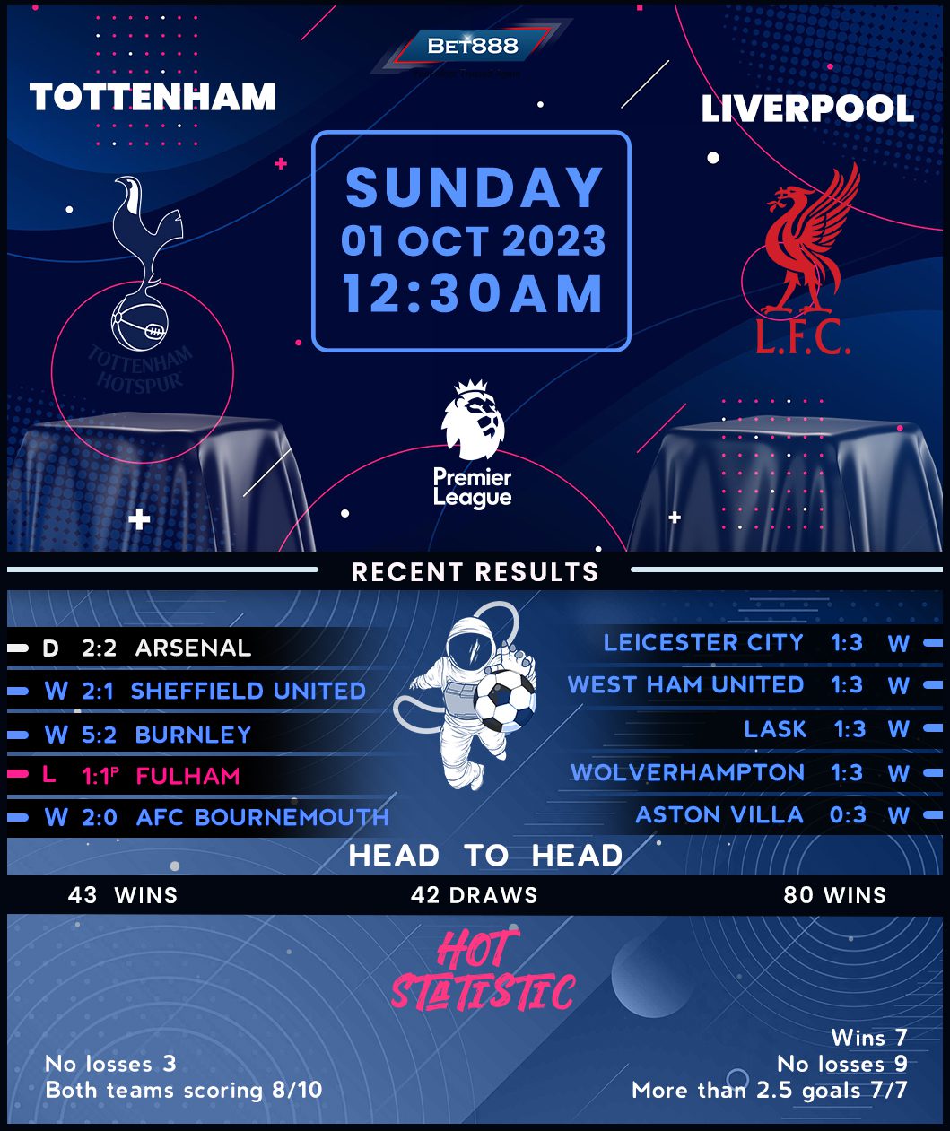 Bowing out of the opening League Cup round at the hands of Fulham gave Tottenham an extra rest period ahead of this blockbuster contest, with ‘Spurs’ battling back twice to hold Arsenal to a dramatic 2-2 draw last weekend. Despite failing to win another North London derby, Ange Postecoglou’s men have at least maintained their 100% unbeaten Premier League start (W4, D2), staying within a four-point distance of pacesetters Manchester City. Avoiding defeat here would see Postecoglou join Antonio Conte as the only Tottenham manager to go unbeaten in his first seven Premier League games in charge. History beckons for the Australian tactician after his side netted multiple goals in each of their six top-flight matches this term. He could become the first-ever ‘Spurs’ boss to see his side score 2+ goals in his first seven Premier League fixtures at the helm.