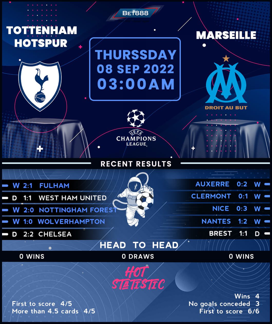 Tottenham Hotspur Stadium is the venue as Tottenham Hotspur and Olympique Marseille go head-to-head in their curtain-raising Champions League Group D encounter.