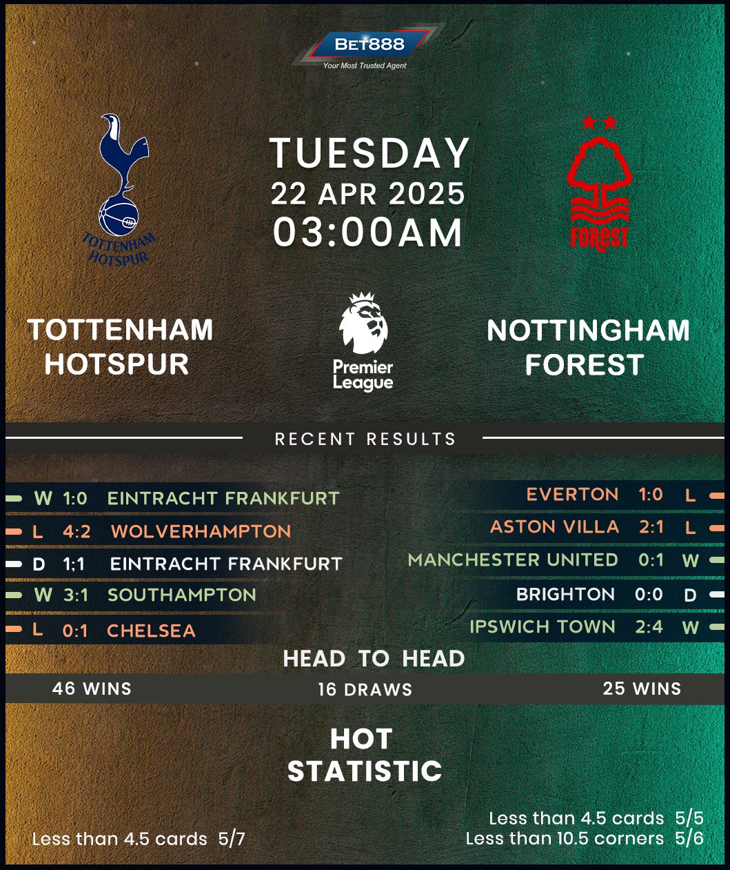 Tottenham Hotspur Stadium is the venue as Tottenham Hotspur and Nottingham Forest go head-to-head in an exciting Premier League meeting.