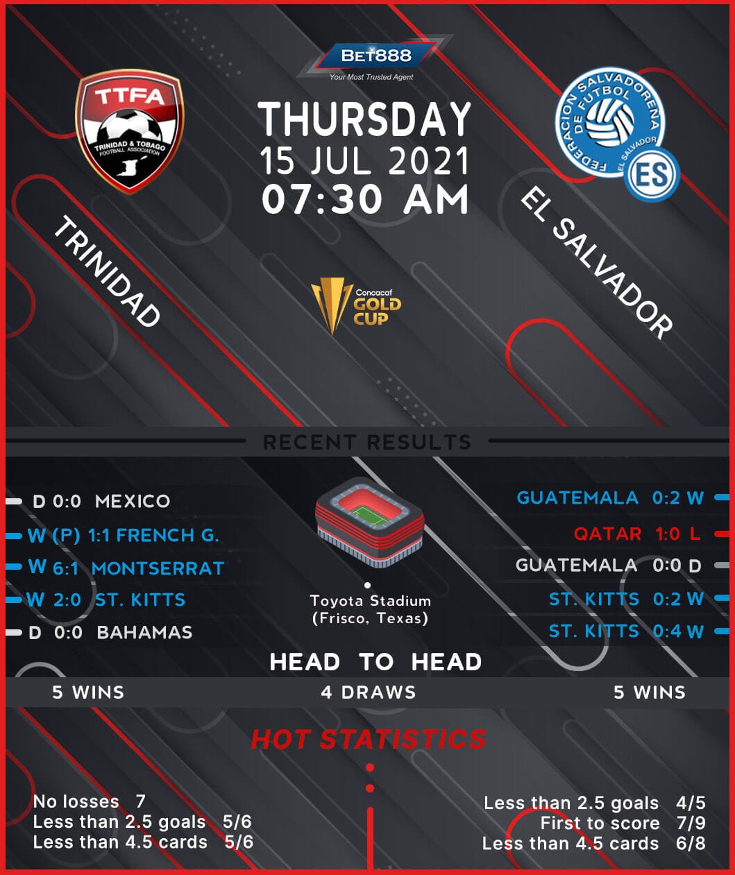 Trinidad & Tobago and El Salvador continue their 2021 CONCACAF Gold Cup campaign at the Toyota Stadium, with the latter looking to all but cement their place in the quarter-finals with a win here.