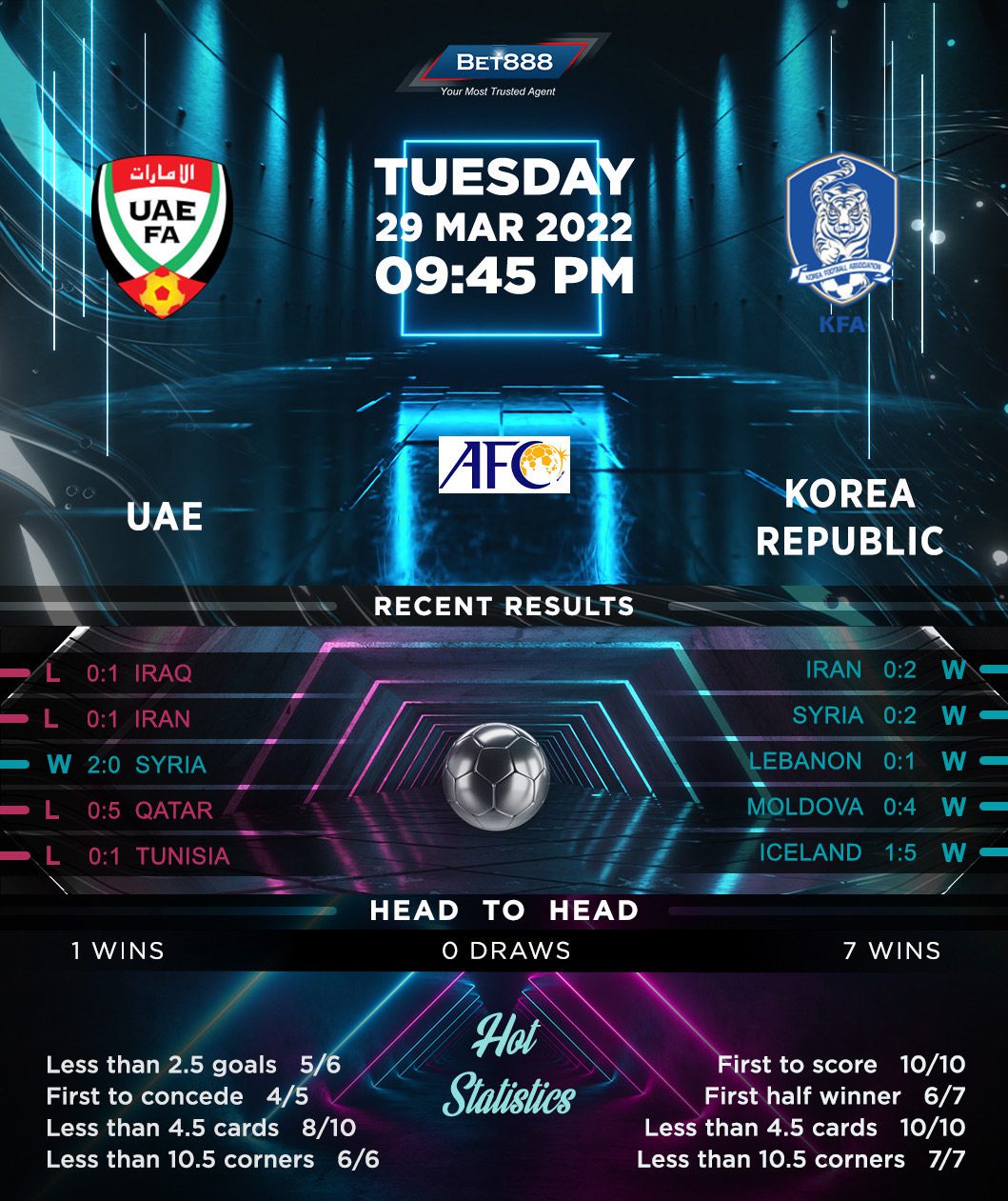 In the meantime, the Korea Republic sailed past Iran 2-0 in their last World Cup qualifying Group A fixture to maintain their almost perfect record in the ongoing qualifying cycle (W7, D2). Having qualified for the World Cup finals for the sixth time on the trot, the Koreans will be looking to extend their four-game winning streak away from home, friendlies included. Ruthless in front of goal and indestructible at the back, the ‘Taegeuk Warriros’ netted ten goals and conceded none across that four-game sequence. Though this will be Korea’s first trip to the UEA within the World Cup qualifying series, they have won each of their last three visits to the country by a two-goal margin, including a pair of 2-0 triumphs across their two most recent such travels.